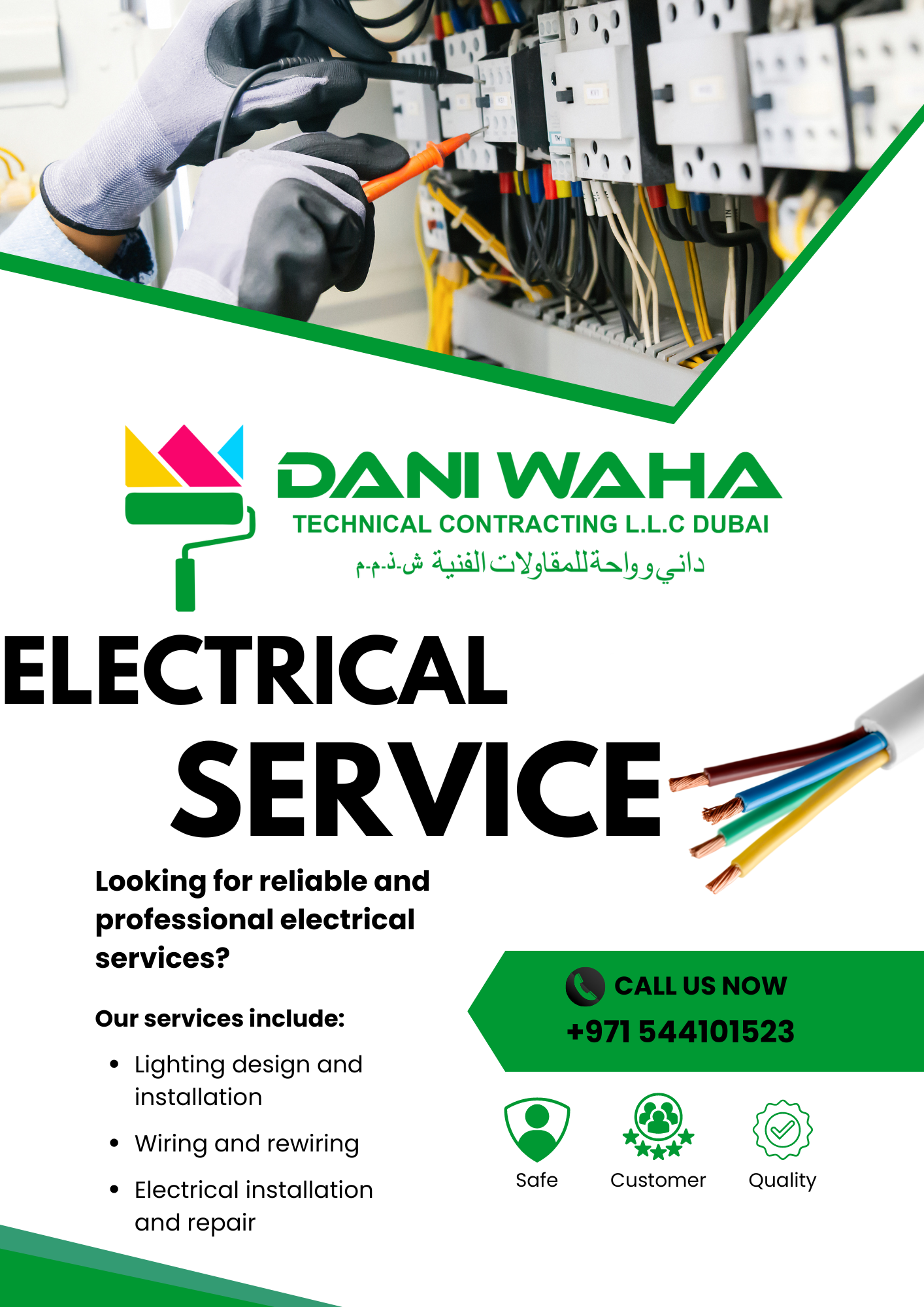 If you are looking for an electrical service in Dubai, Dubai Waha Technical Contracting LLC Dubai is the place to be at. Our electricians have expertise in all kinds of electrical works, from fixing simple electrical outlet issues to effectively rewiring your elecrical system. Get quotes from multiple vetted electricians now!